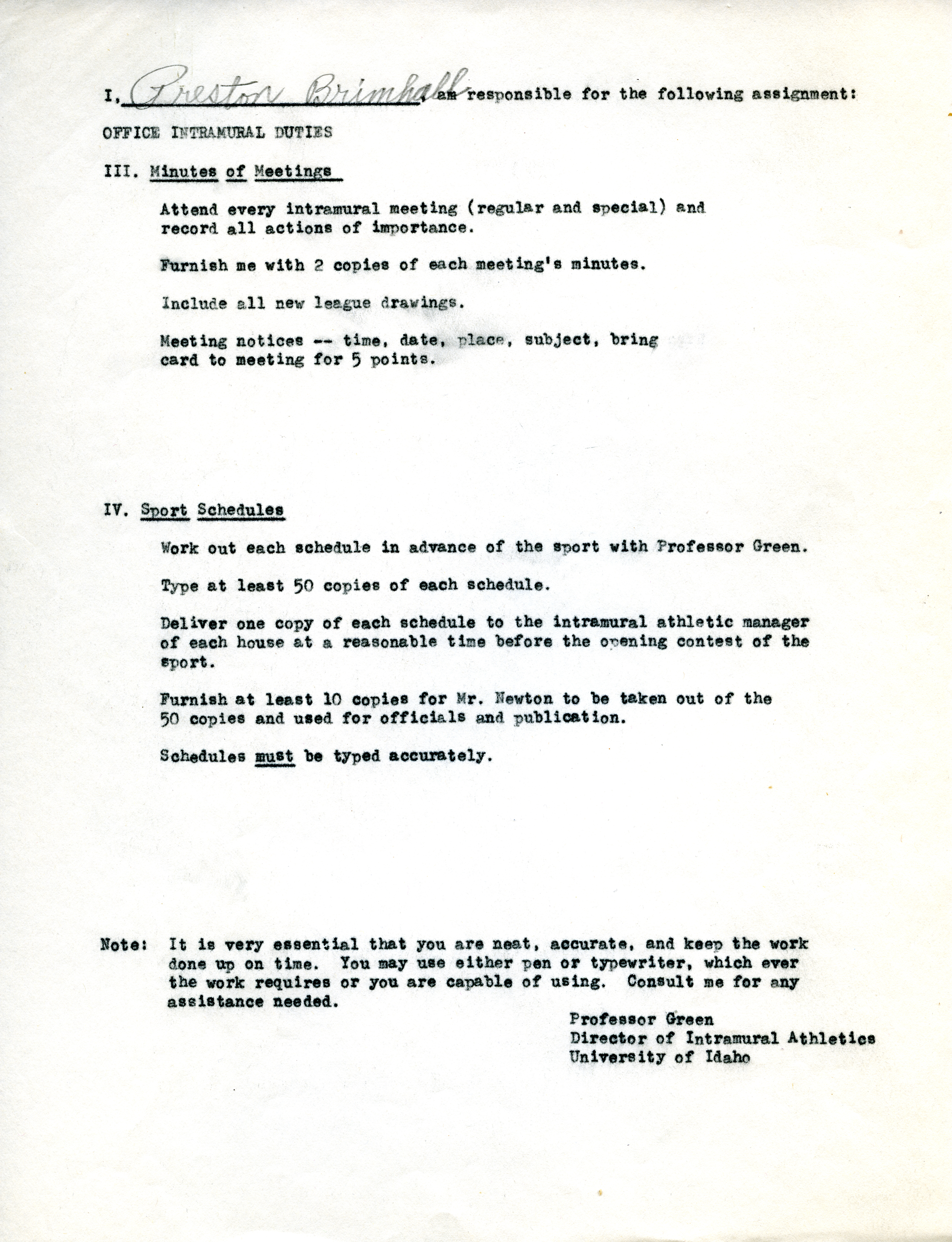 - "Intramaual Office Duties", University of Idaho Intramural Sports collection, UG 087, University of Idaho Library Special Collections and Archives, intramural_duties, Idaho Harvester, Special Collections and Archives, University of Idaho Library