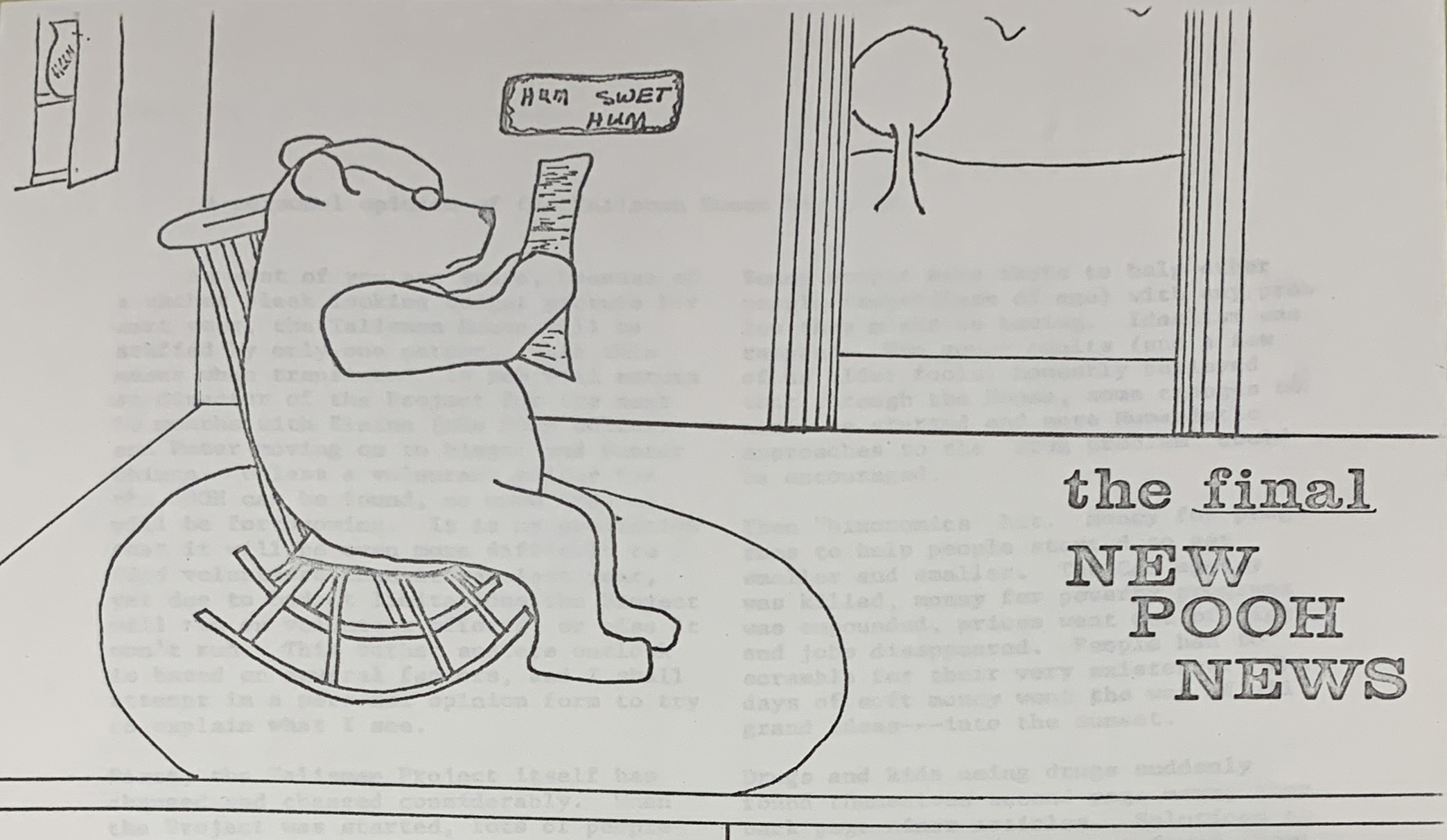 - "Talisman House New Pooh News", President's Office (Hartung) records, UG 013, University of Idaho Library Special Collections and Archives, thouse-pooh, Idaho Harvester, Special Collections and Archives, University of Idaho Library