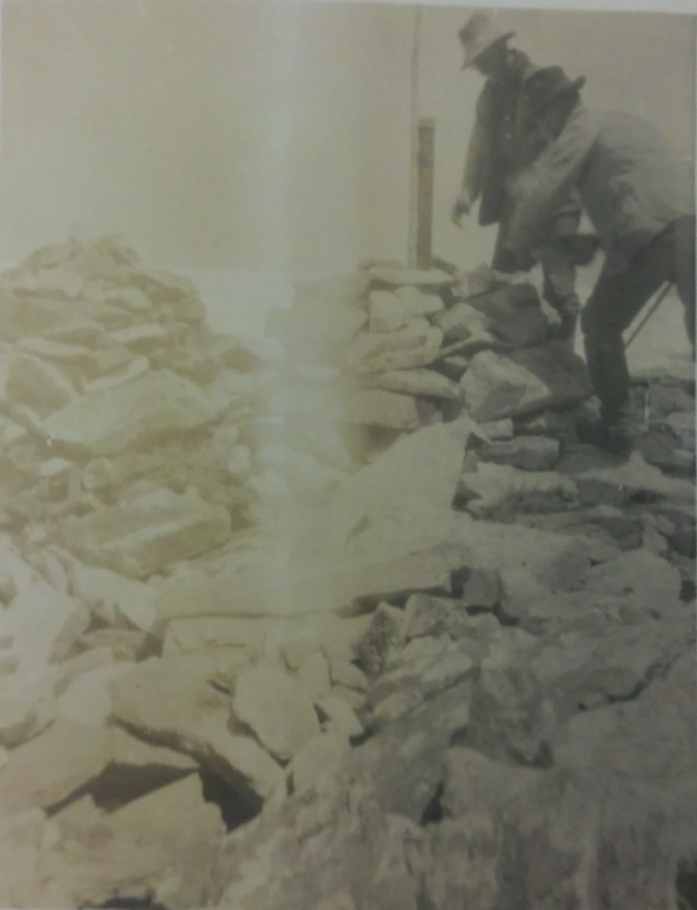 Set an iron pipe 3 ins. Dia 4 ft long, with flanges at the bottom, 8 ins. In the ground to bed rock for the 334th mile cor. A brass cap on top of the pipe has raised letters MONT. on N.E., IDA. on S.W. Raised + in center and stamped 334.028M on N.W. Pits impracticable. Raised a mound of stone 5 ft base 3 ft high around the post and raised a mound of stone 5 ft base 3 ft high W. of cor.